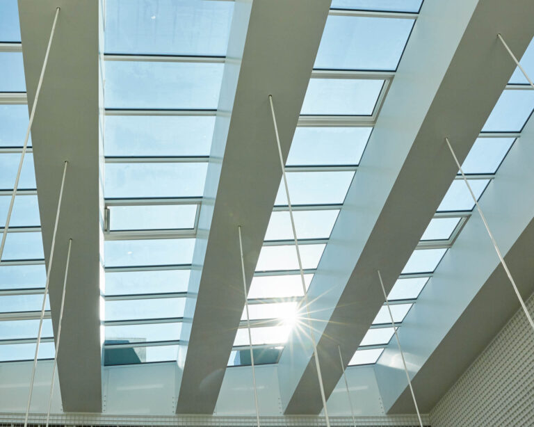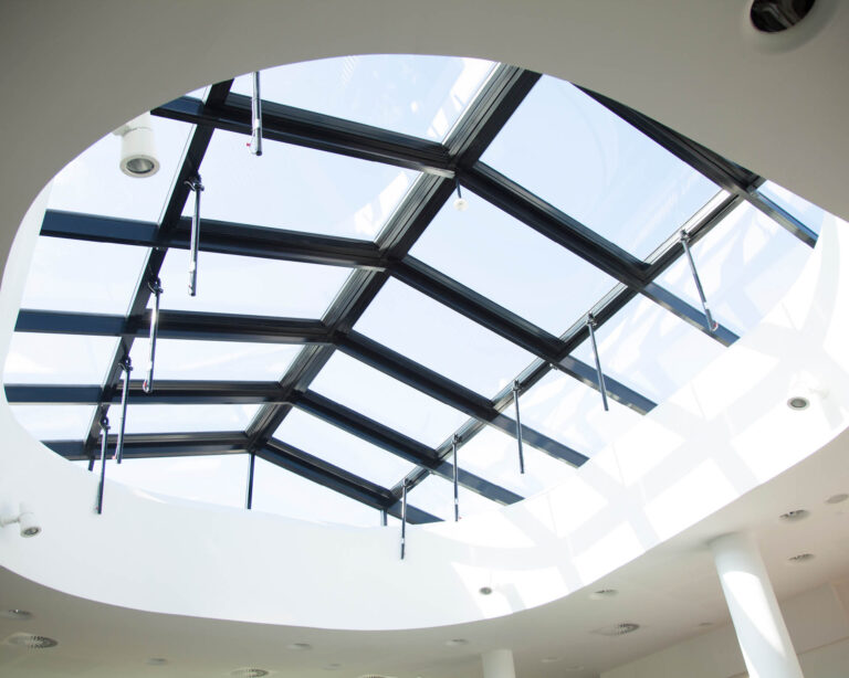 Arkitekten eller kunden bestemmer selv størrelsen på ruderne, samt det antal oplukkelige vinduer man ønsker. Med et glastag får du det ultimative lysindfald i rummet. Det kan leveres med oplukkelige vinduer med automatikker for styring af klimakontrol og motorer for røg og brandudluftning. Med aluminium i kombination med stål kan vi opnå store spændvidder, som kan give maximalt lysindfald, og med Schücos gennemtestede systemkrav kan vi garantere for tæthed over hele tagfladen.