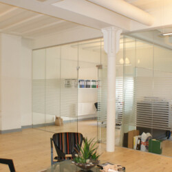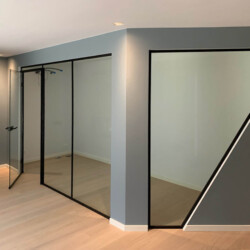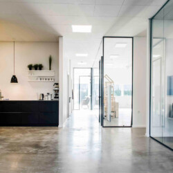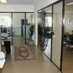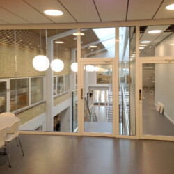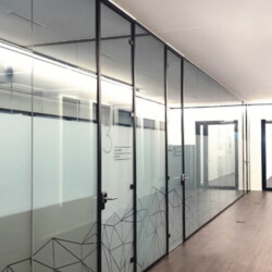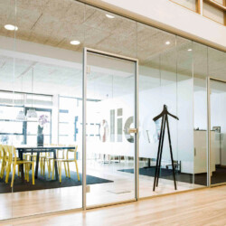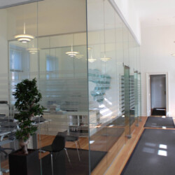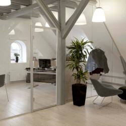 Brug vores glasvægge i kontormiljøer hvor der ønskes mindre kontorer, opdelinger eller afskærmning fra øvrigt aktivitet i rummet. Ønsker du glasset folieret med mønstre, grafiske motiver mm. så leverer vi også det. Alt tilpasset dine ønsker til design og funktionalitet.