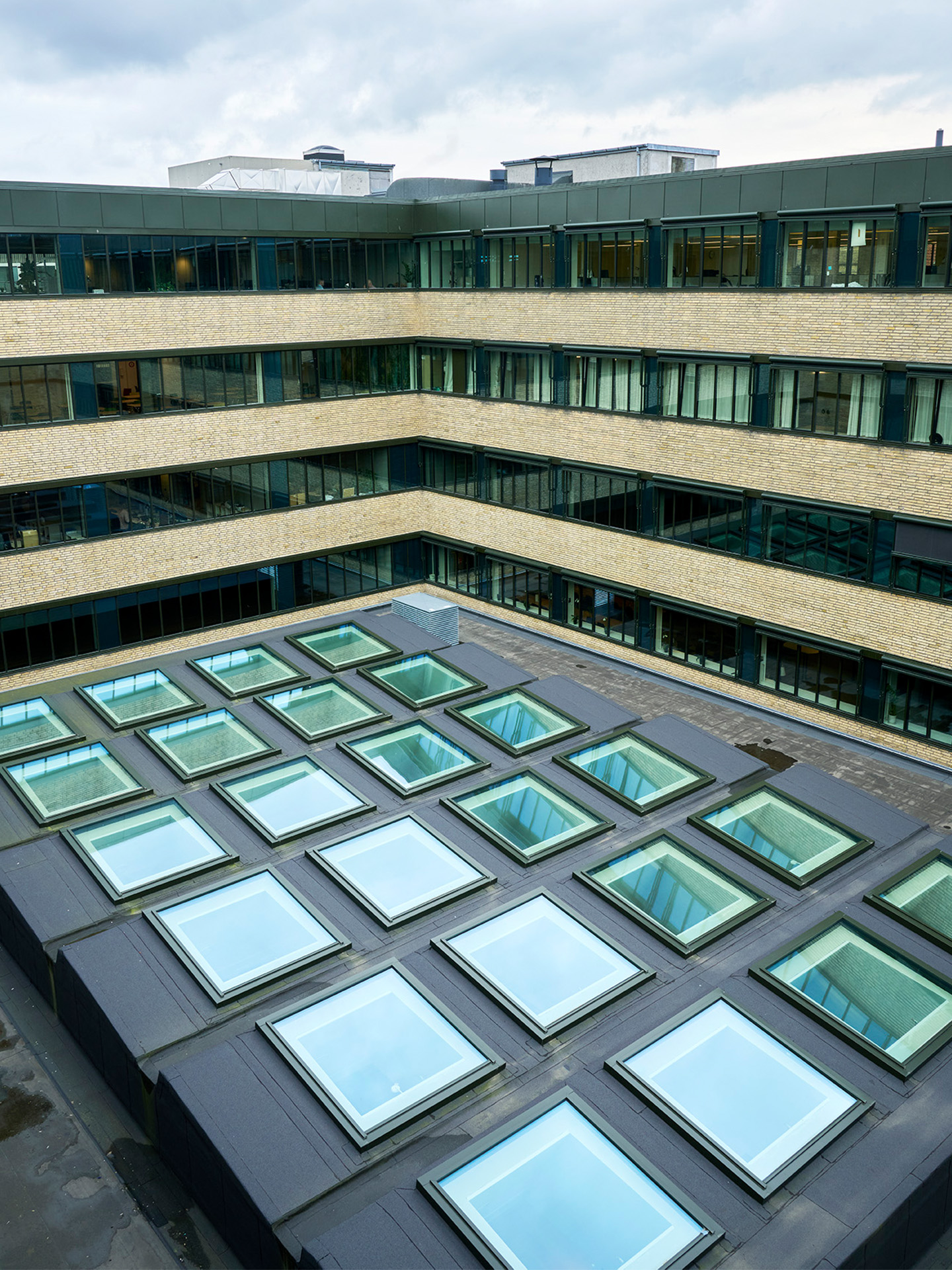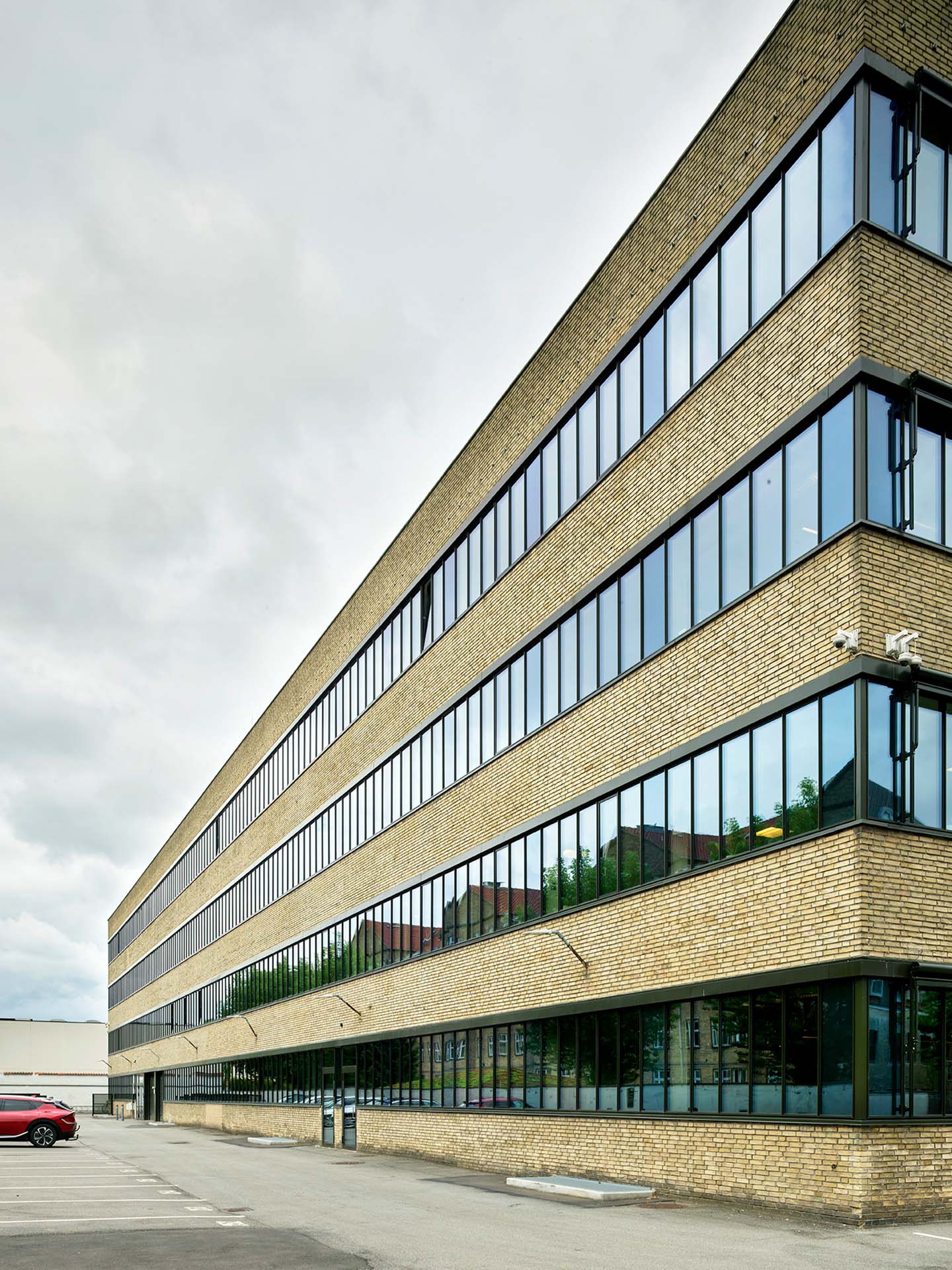 Facaderne spiller en central rolle i det arkitektoniske udtryk. De store glaspartier sikrer et generøst dagslysindfald og skaber transparens i bygningen, mens de slanke aluminiumsprofiler understreger den stringente og nutidige facadeæstetik.